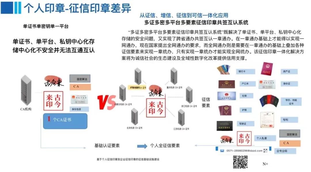 玺信系统通过各种证信要素叠加后的征信印章实现了跨区域、跨平台的可信认证,可为诚信社会的生态建设及全域性数字化改革提供强大的信用支撑,是目前国内唯一能够真正实现“全网通办”的系统平台。使企业与政府各部门交互电子信息时更加安全可控、提高效率、降低成本,让百姓少跑腿,办好事。