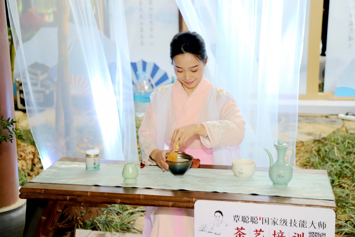 在“壮美广西·茶和天下”茶文化宣传展示区,为庆祝六堡茶制作技艺和瑶族油茶习俗列入联合国教科文组织人类非物质文化遗产代表作名录,特别设计了中国茶文化源远流长的历史场景,在琴箫和鸣中,可欣赏国家一级茶艺师覃聪聪团队的六堡茶冲泡技艺和宋代点茶的茶艺展示,品茗六堡茶的甘香,了解国家级非遗代表性项目坭兴陶的茶具。