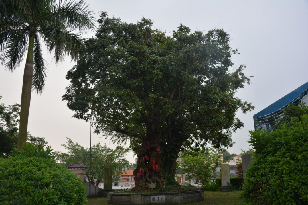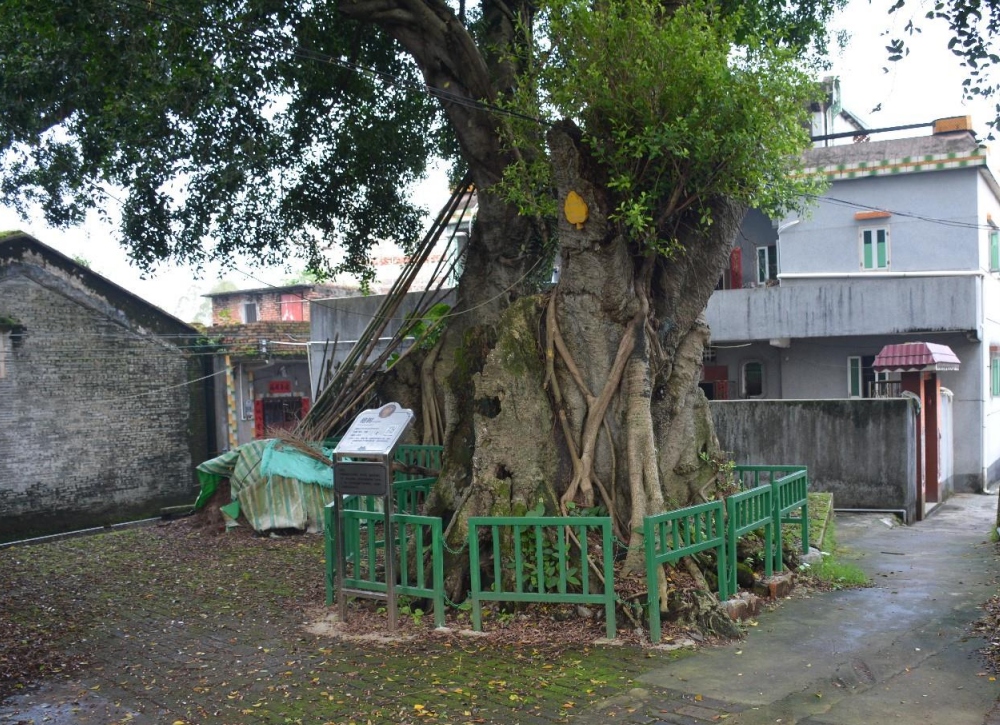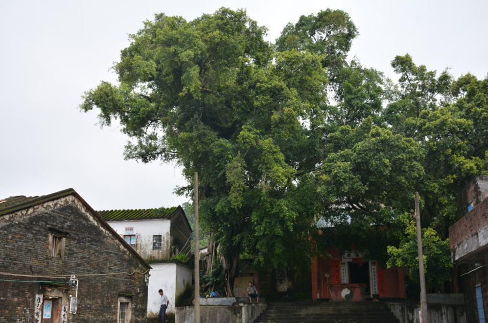 在恩平市横陂镇大亨村北极殿前,有一株树龄约300年的榕树,是二级古树,树高15.9 米。这棵古榕树经历了300年的风风雨雨,依然挺拔苍翠。一直以来,大亨村族人都恪守神圣的树图腾信仰,都认为这棵长在北极殿前的古树能够给他们带来庇护和帮助他们实现美好愿景。这棵树龄达300年的古榕树,如一位慈祥的老者,张开着深情的怀抱,庇护着这一方水土和民众。