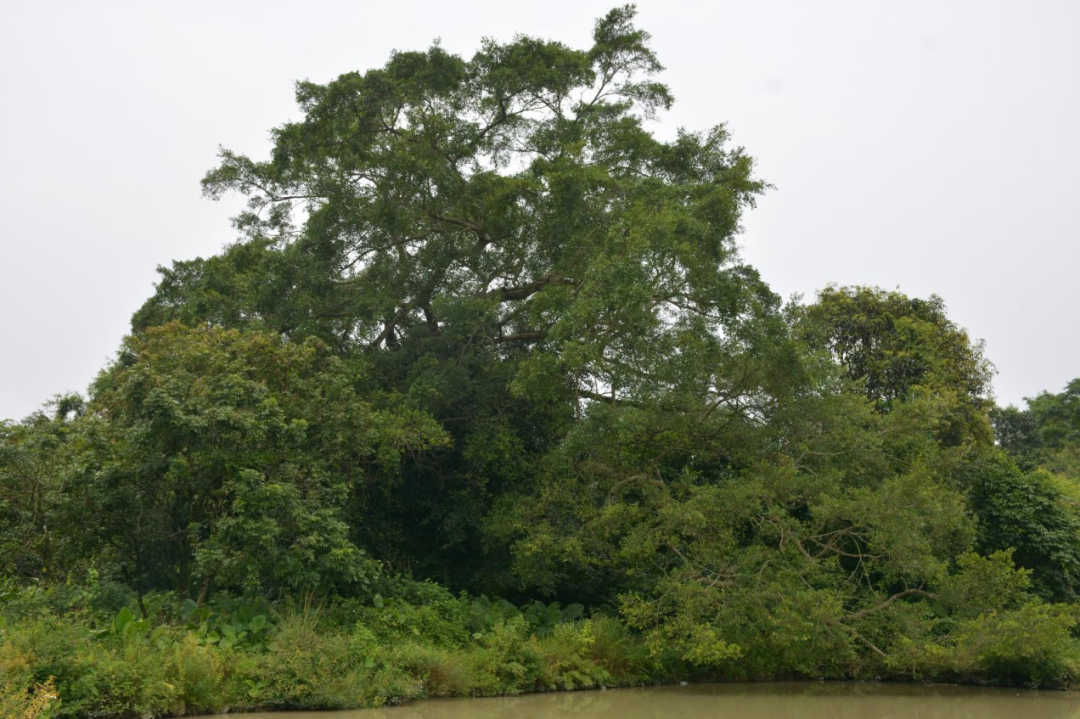 此树生长于恩平市良西镇龙山村委会平塘村村尾水塘边,为二级古树,树高20.4米。据村里老人讲,小时候听长辈说此树大约是清康熙年间时种的,距今已有三百一十年左右,是村里的风水树。这棵树的经历足以证明榕树的具有极其顽强的生命力。据说,100多年前,此处原为禢就福的父亲家的晒场,这棵榕树就长在晒场旁边。由于榕树的树冠遮挡阳光,影响晒谷的效果,于是,禢就福的父亲便点燃这棵榕树树洞里干枯的木质,企图将榕树烧死。尽管暗火在树洞内连续烧了几天,但最终未能将榕树烧死,并成就了百年古树。