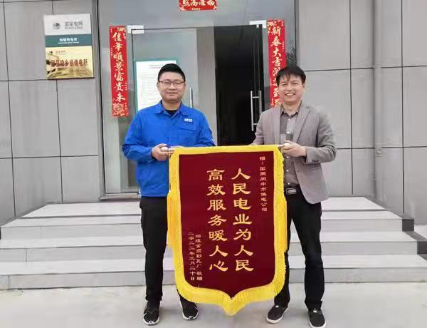 场景:3月20日,阆中市柏垭金顶彩瓦厂负责人宋浩杰将一面绣有“人民电业为人民 高效服务暖人心”的锦旗,送到了国网阆中市供电公司柏垭供电所,感谢供电公司为农村“小微”企业的发展提供电能助力。