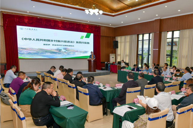 四川省农业农村厅政策法规处副处长曾思尹作了《<中华人民共和国乡村振兴促进法>及四川实践》的主题报告。她指出,乡村振兴促进法具有基础性、综合性、统领性、现代性特点,与2018年以来一号文件、乡村振兴战略规划、《中国共产党农村工作条例》等共同构建了实施乡村振兴战略的“四梁八柱”,进一步夯实了乡村振兴的制度体系,奠定了乡村振兴良法善治的法律基础,并介绍了四川推动乡村振兴促进法落实落地的三大目标和各自需要补齐的短板等实践。