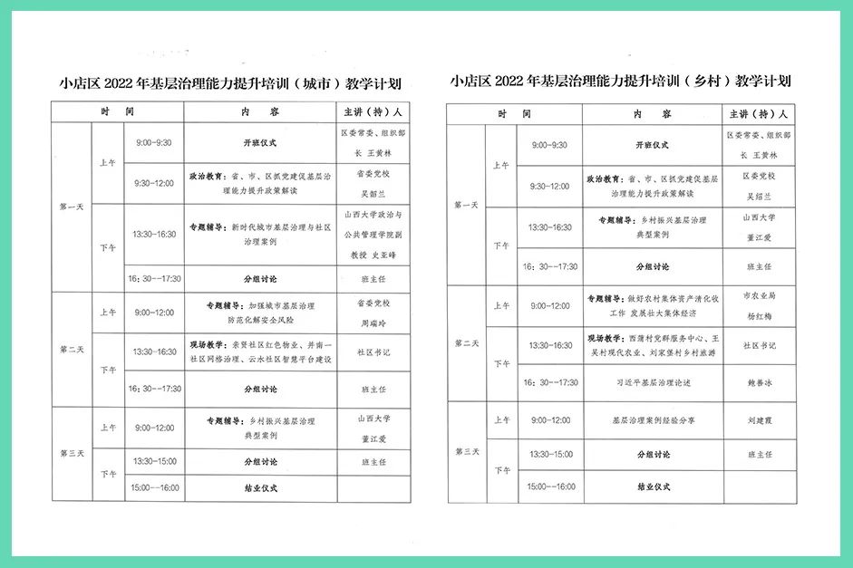 小店区2022年基层治理能力提升培训(城市)教学计划。
