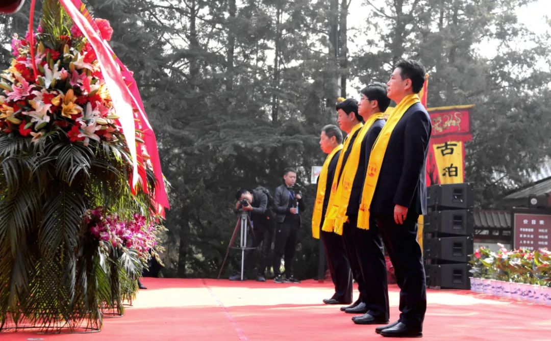 黄陵县人大常委会主任高育民先生、黄陵县人民政府县长高勇先生、政协黄陵县委员会副主席杨永泰先生、黄帝陵管理局党总支副书记张海泉先生代表黄陵县人大常委会、黄陵县人民政府、政协黄陵县委员会、黄帝陵管理局 敬献花篮