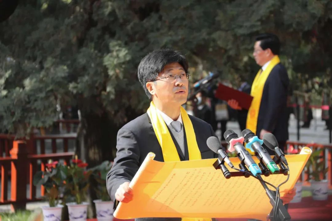陕西省黄帝陵文化园区管委会副主任、中共黄陵县委副书记、黄陵县人民政府县长高勇先生代表黄陵守陵儿女开章恭读祭文