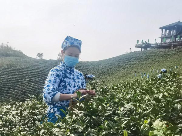 漫山遍野的茶树经过春雨的滋润显得娇嫩欲滴,嫩绿吐舌的新芽儿一片挨着一片,顺着连绵起伏的山势向远处延伸,三五成群的采茶女手挽小茶篮,脚踩绣花鞋,赶着趟儿地来了,她们像一个个调皮的小精灵,在茶山上不停地穿梭,不一会儿,小篮子里就满满当当全是新茶了。