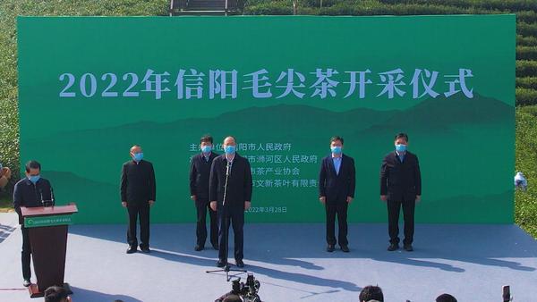 主席台上,2022年信阳毛尖茶开采仪式正在举行,当信阳市委书记蔡松涛向大家郑重宣布2022年信阳毛尖茶正式开采,全场爆发出热烈的掌声。