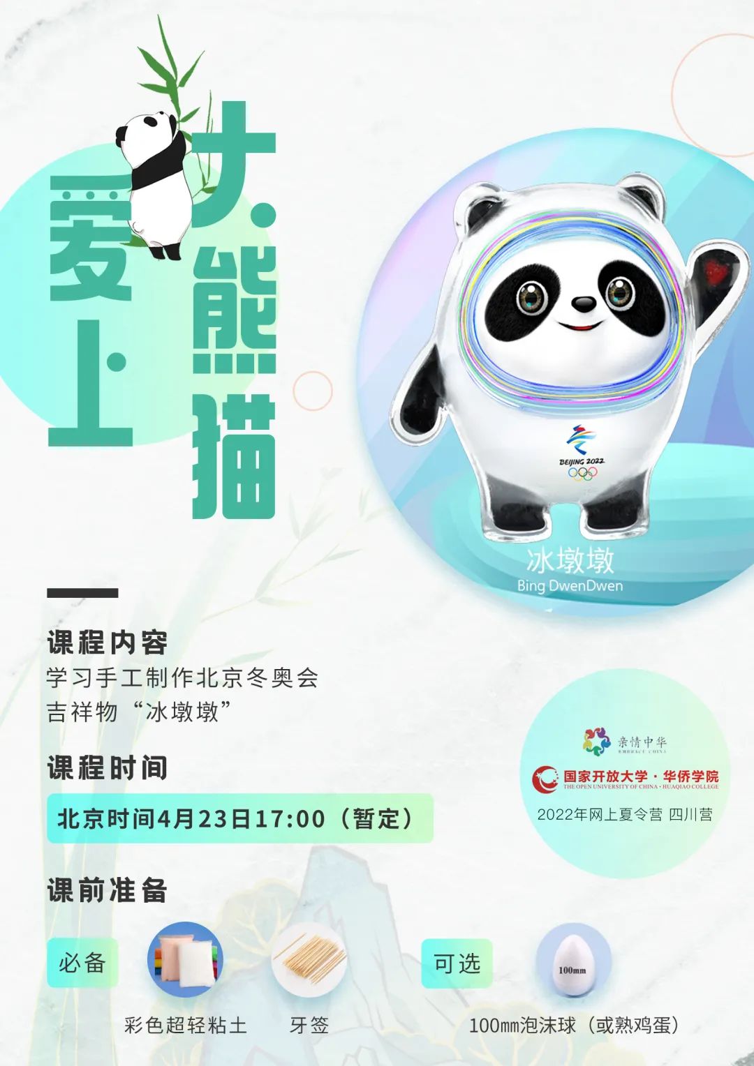 本期夏令营,除了“听”成语、历史、诗词人文地理等经典传统故事外,四川省侨联为营员们准备了“走进熊猫基地”“熊猫冷知识”“跟我学画‘蓉宝’”“网红明星”“武林萌主”等精彩的视频故事,以及手工制作北京冬奥会吉祥物“冰墩墩”的直播课,精彩纷呈的课程安排和灵活多样的学习方式,让小营员们在听音频、看视频、动手做的过程中,学习荟萃古今的名著经典,感悟博大精深的优秀传统,持续保持学习中华文化的热情。