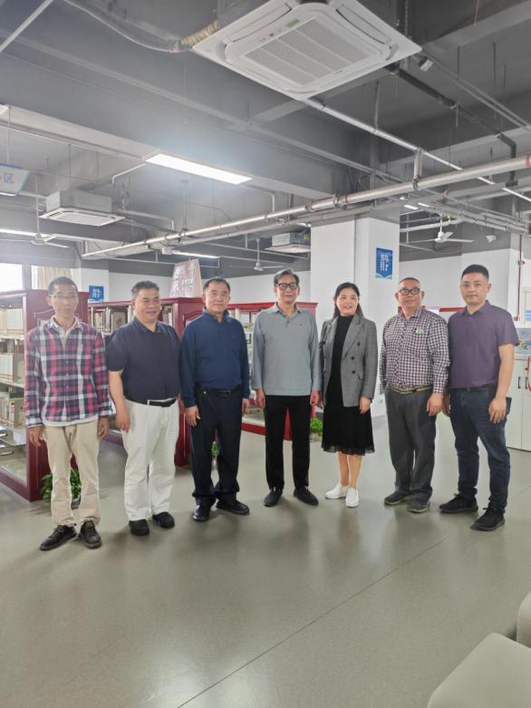 图为高伟浓教授(右4)在江门市图书馆地方文献部调研