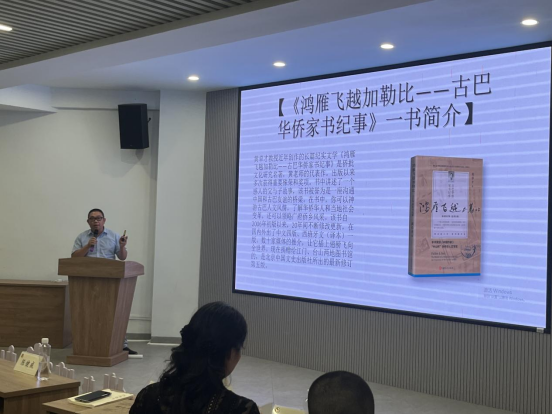 2025年9月19日,江门市政协2025年第六期“书香政协·悦读五邑”读书活动在五邑大学鹤山楼举行,江门市政协委员代表、相关专家学者等60多人参加。本次读书活动的主题是“跨越时空、筑梦侨乡”,活动主办单位是江门市政协港澳台侨和外事委;协办单位是五邑大学、江门市世青发展中心、江门市公共外交协会、江门市政协港澳台侨和外事委委员工作室等。江门市侨媒中心副理事长、主任黄柏军向读者推荐黄卓才教授纪实文学《鸿雁飞越加勒比——古巴华侨家书纪事》写作特色和时代意义。