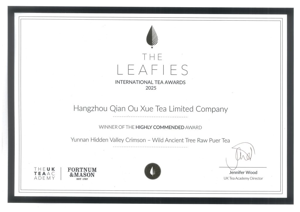 “The Leafies”国际茶叶学院奖由英国国际茶叶学院与福南梅森(英国皇室御用茶品牌)联合举办,是英国唯一且权威的专属茶叶奖项,以全球顶级茶品盲测评选著称,素有茶叶界”奥斯卡”之美誉。本届评选于1月16日至17日在伦敦福南梅森总部举行,首日为闭门颁奖礼,次日向公众开放获奖茶品品鉴。