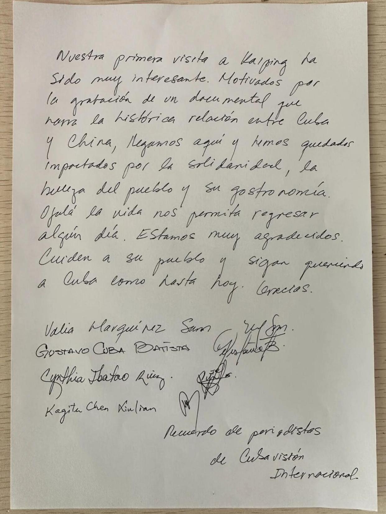 古巴国际电视台记者为开平市百合镇题词留念