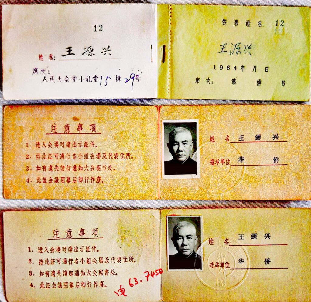 1959年,王源兴升任全国侨联副主席,同时兼任北京市政协副主席,还当选第二、三届全国人大代表。