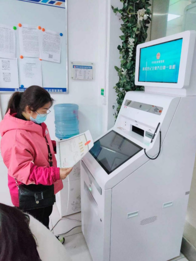 图为申请人通过商事制度一体机领取营业执照