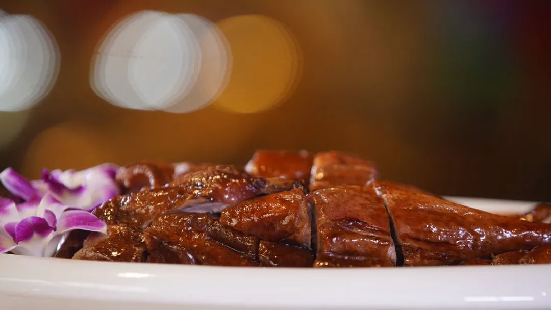 再者是香味,古井烧鹅的香一方面是得益于荔枝木与封闭泥炉的熏焗,另一方面则是采用了新会特产——陈皮作为腌料的结果。最后的烧鹅成品呈现肉嫩爽口、鲜香多汁、齿颊留香的特征。/坚守传统 古井风味/