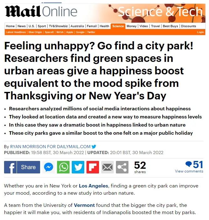 “这些公园为疫情中的人们提供了一个心灵的庇护所,对心理健康十分有益。”美国数据分析网站的文章称。