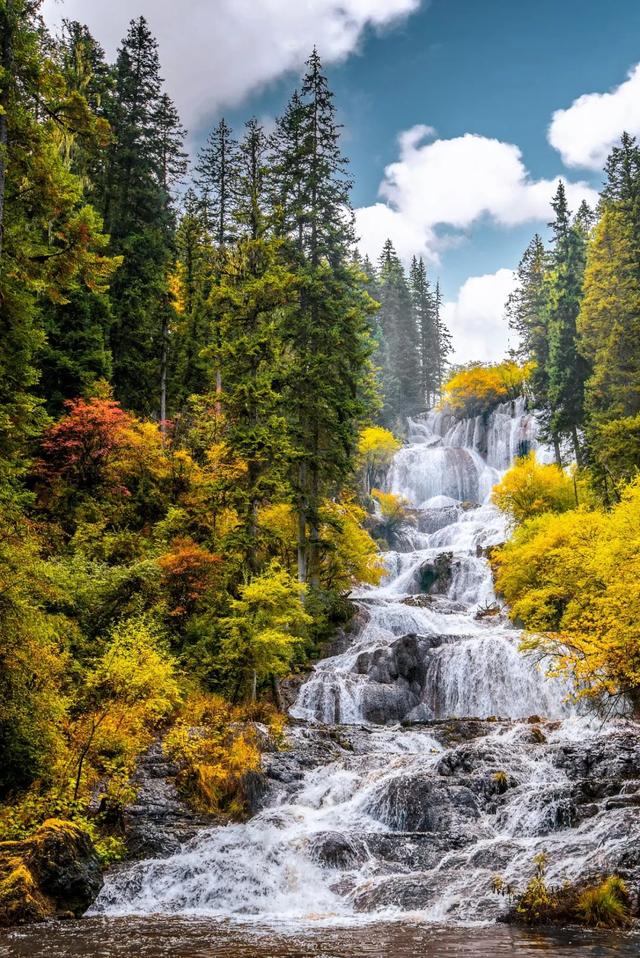 不断涌入的地下水,让群海终年水量充沛,并催生了中国最大的钙华瀑布——诺日朗瀑布,它也是中国最宽的瀑布,宽度达270米,集静态和动态美景于一身,其独特性与稀有性无与伦比。