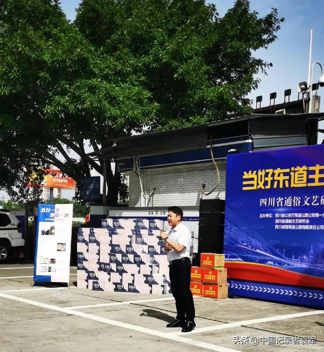 四川省通俗文艺研究会会长陈家甫代表研究会发表讲话,对高速公安同志们细致、耐心、认真、负责的工作和兢兢业业、公而忘私的精神表示感谢!并承诺遵守交通安全,平安出行,从我做起,为交通安全奉献⾃⼰的⼀份⼒量!