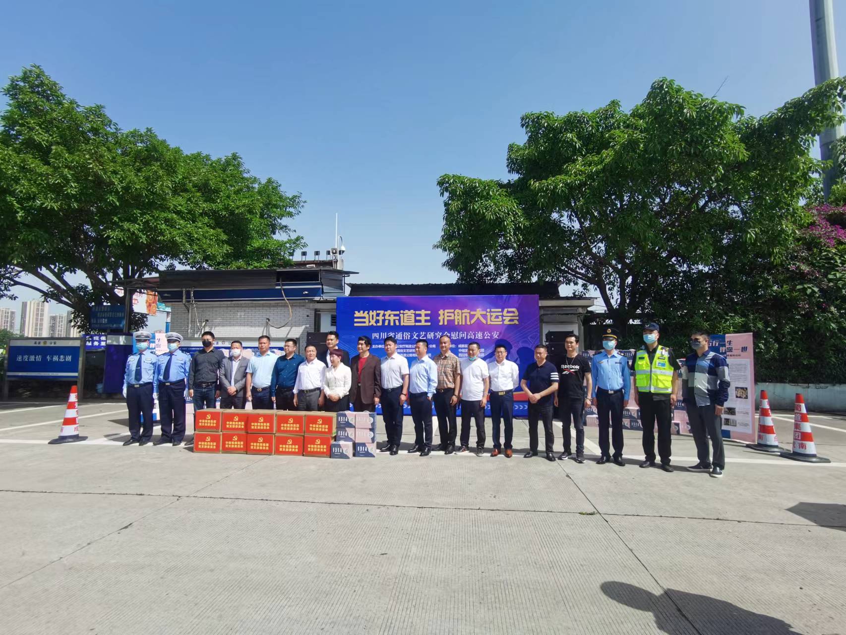 央媒头条【记者袁军 通讯员陈璐】4月28日上午,在“五一国际劳动节”来临之际,四川省通俗文艺研究会开展了“当好东道主•护航大运会”慰问高速公安活动。四川省通俗文艺研究会有九家副会长单位带着慰问物资,文艺爱好者们带着精彩的文艺节目,为四川省公安厅高速公安局一分局送去了慰问与关怀。