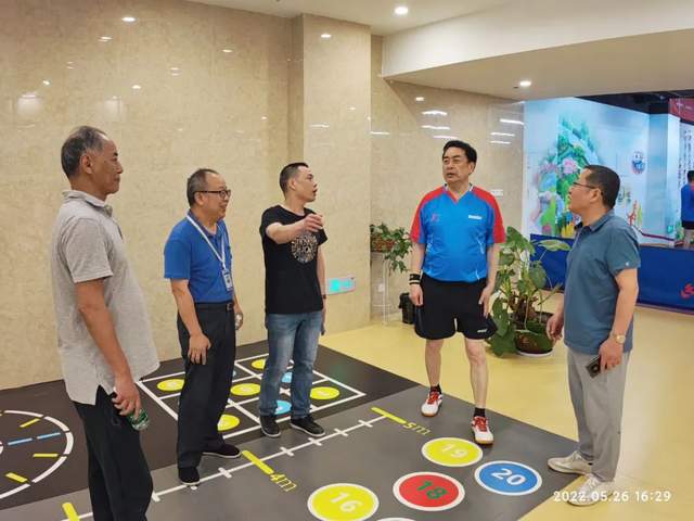 赵振元视察乒乓球场地,并提出指导意见