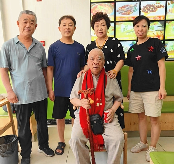 朱德总司令的秘书、红管家——袁存建先生。生于民国8年(即1919年),思维敏锐,和蔼健谈,堪称军界国宝。他在抗日战场上,与日本鬼子正面拼杀,敢于亮剑,至今他右手手腕处还留着很深的疤痕。在红军两万五千里长征中,爬雪山、过草地,跟随朱德总司令为中华民族之崛起,勇往直前,不懈奋斗。